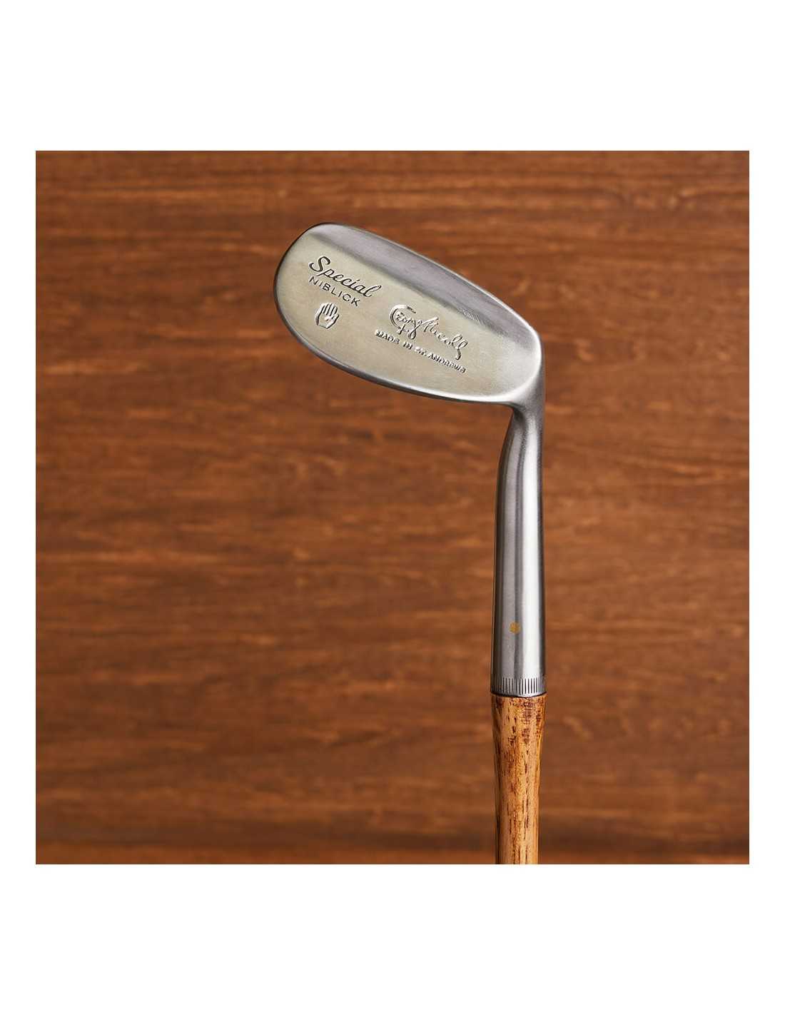 This hickory golf Niblick (55°) iron is inspired by the 1920s-style George Nicoll hickory golf clubs. George Nicoll aimed to make golf more accessible, designing clubs that were easy to play with and marking them with his famous 'Hand' cleek symbol, known as 'The Helping Hand of Golf.' Ideal for beginners due to their ease of use, they also offer the precision needed for skilled players. The dot face, flange, and bounce design help players get the most out of their hickory golf experience.