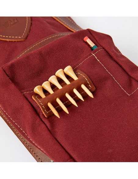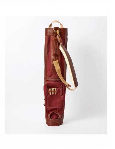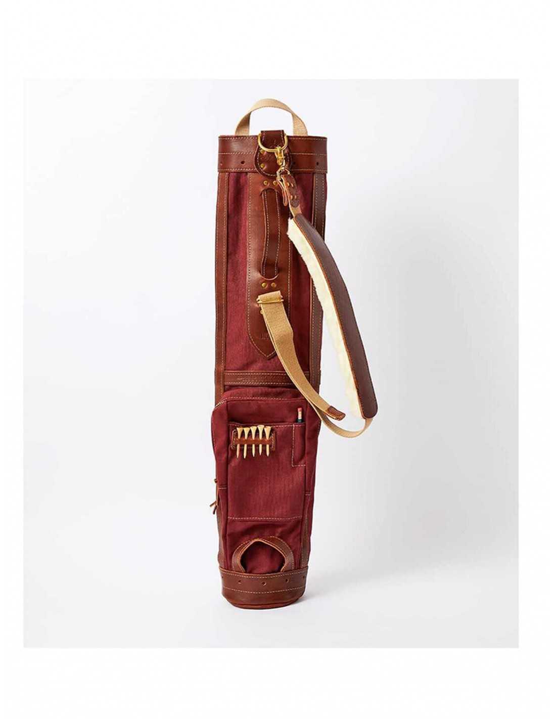 このゴルフヒッコリーゴルフ1920年代スタイルの丈夫なキャンバス、レザー、金具部分には真鍮を使用して米国で手作りされたゴルフバッグ。この直径6インチのゴルフバッグには、ゴルフクラブが最大10本まで入る十分なスペースがあります。オークの棒でサポートされており、傘ホルダー、タオルフープ、ボトムハンドル(持ち運びの位置を簡単に調整できる)、ソフトストラップが付いています。ジッパー式フロントポケットには、ゴルフボールやその他のゴルフアイテムを収納するのに十分なスペースがあり、ティーホルダー、スコアカード、鉛筆ホルダーも付いています。高品質な素材から手作りされており、経年変化もお楽しみいただけます。このバッグはバーガンディーです。