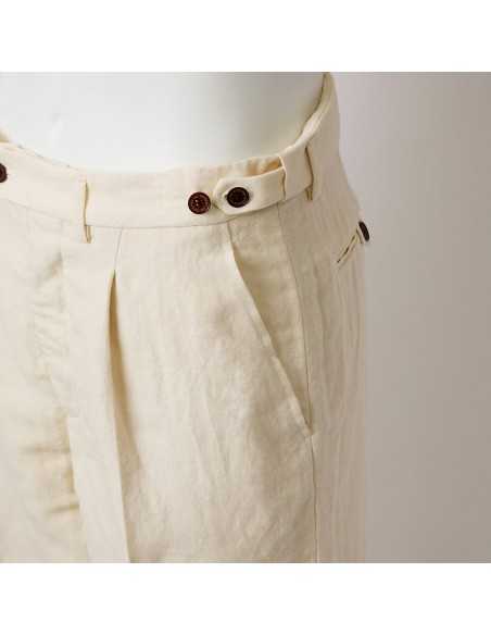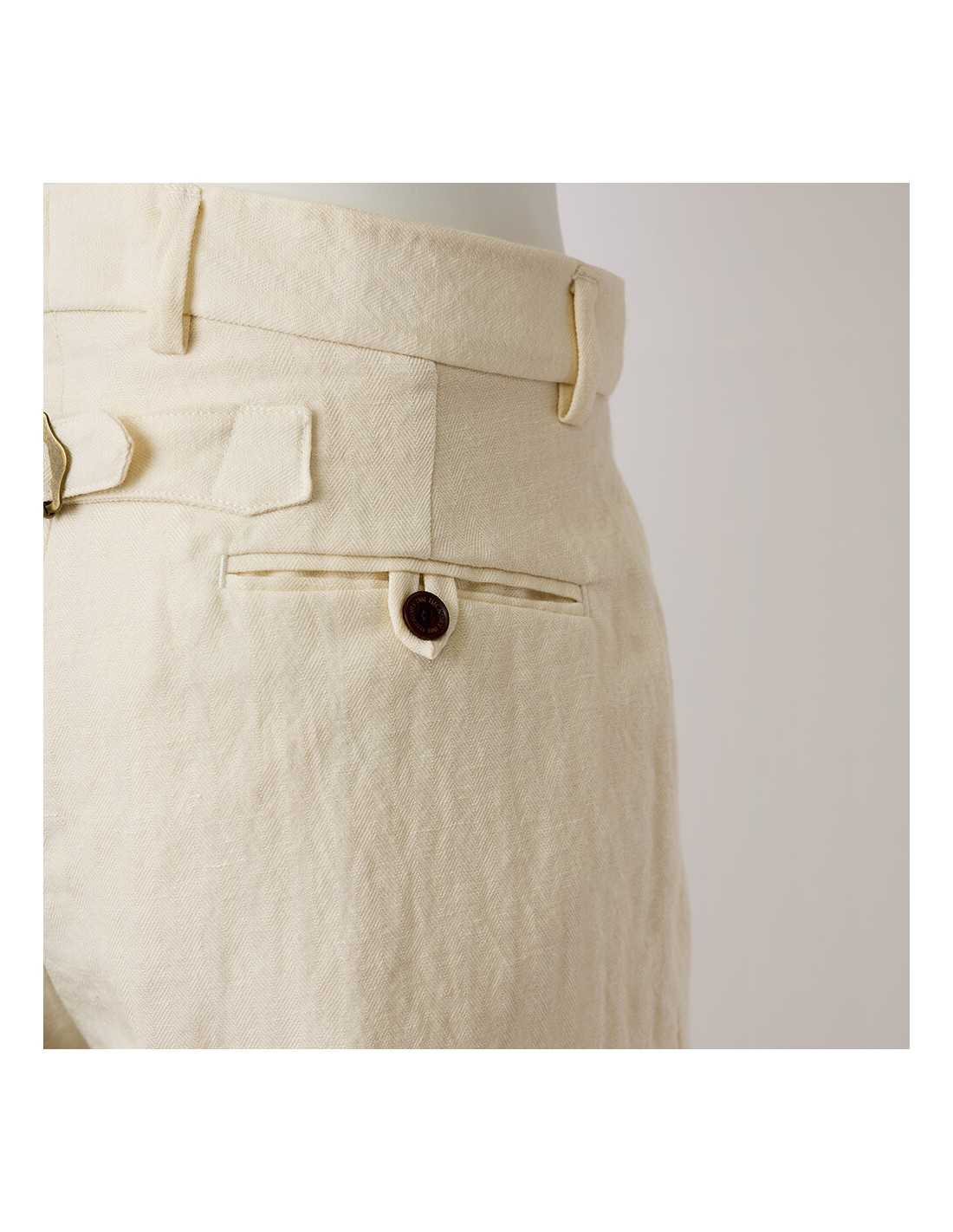 ウエストは片側約1インチ、合計約2インチで調節可能。 ベルトでもボタン式サスペンダーでも着用可能。ゴルフのスコアカードやヤーデージブックが入る大きなバックポケットを2つ装備。サイドに大きなポケットを2つ、内側に小銭やゴルフグッズを入れられる小さなポケットを装備。ボールマーカー用の小型フロントポケット。 ボビー・ジョーンズが着用していたような、ワイドレッグデザイン。