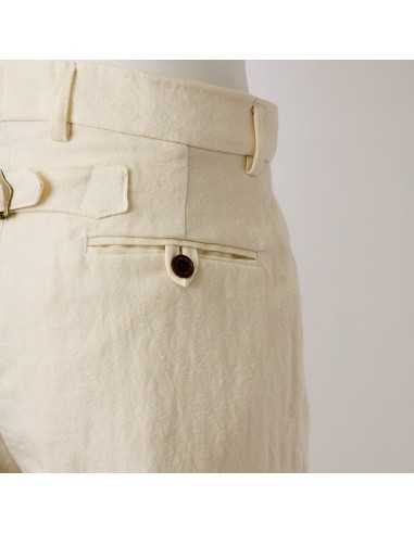 ウエストは片側約1インチ、合計約2インチで調節可能。 ベルトでもボタン式サスペンダーでも着用可能。ゴルフのスコアカードやヤーデージブックが入る大きなバックポケットを2つ装備。サイドに大きなポケットを2つ、内側に小銭やゴルフグッズを入れられる小さなポケットを装備。ボールマーカー用の小型フロントポケット。 ボビー・ジョーンズが着用していたような、ワイドレッグデザイン。