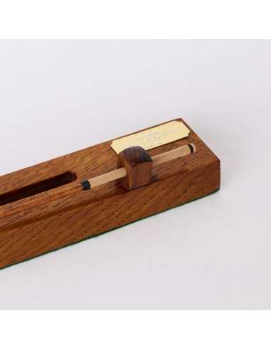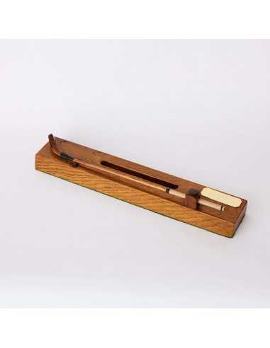 こちらは、本物の職人技が光る逸品、ミニチュアサイズのロングノーズ・ヒッコリーゴルフクラブです。伝統的なロングノーズクラブを忠実に再現し、柿の木で作られたヘッド、ヒッコリー材のシャフト、革製グリップ、ワックス糸の巻き仕上げなど、すべてフルサイズと同じ丁寧な工程で手作りされています。