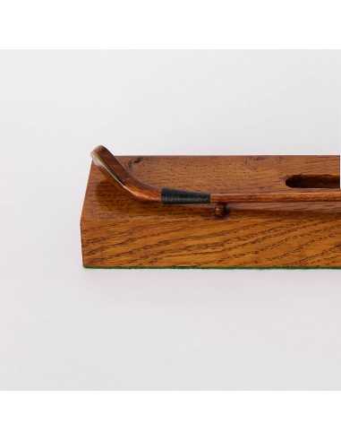 しかし、これは単なるミニチュアゴルフクラブではありません。物語が詰まったアートピースであり、実用的なデスクアクセサリーでもあります。スタイリッシュなデスクスタンドに取り付けられ、名刺や小物を収納するのに最適です。デスク上のアクセントとして、仕事の合間の会話のきっかけとなるアイテムでもあります。